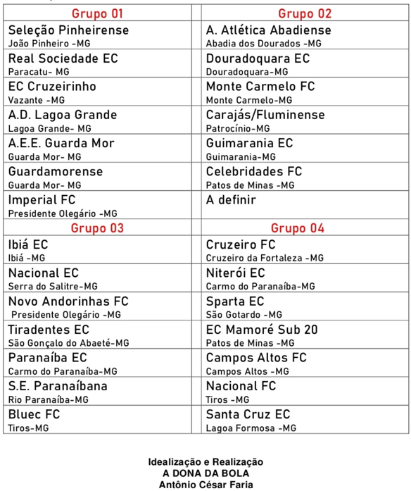 A 19ª Copa Regional Amapar 2026, realizada e organizada pela A Dona da Bola, consolida-se como um dos principais eventos do calendário do futebol amador mineiro, sobretudo porque reunirá equipes tradicionais e projetos emergentes da região de abrangência da Associação dos Municípios da Microrregião do Alto Paranaíba – AMAPAR. Além disso, sob a coordenação e realização da A Dona Da Bola, que tem como líder, Antônio César de Faria, a competição mantem o foco no desenvolvimento esportivo, na organização técnica e na valorização dos atletas locais, o que fortalecem ainda mais o torneio.