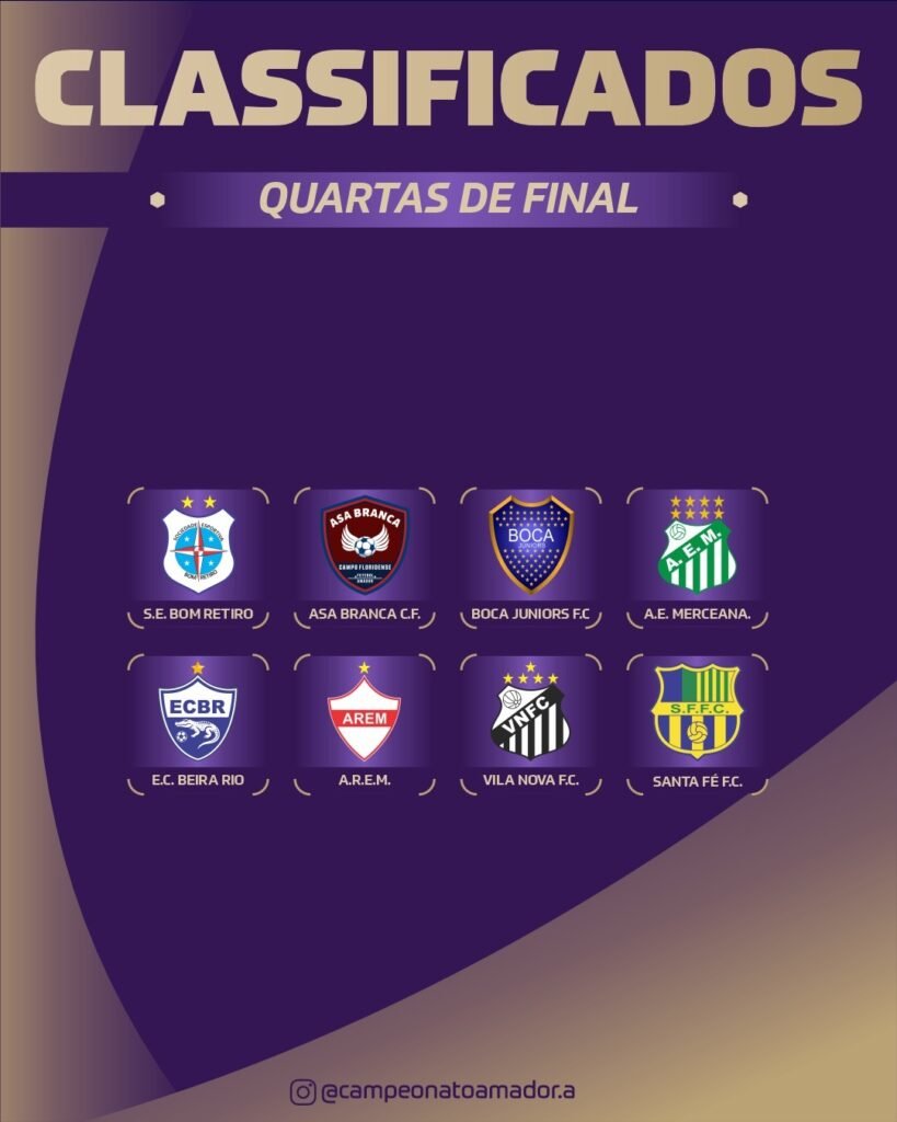 A última rodada aconteceu na manhã neste domingo dia 12 de outubro, com Santa Fé, Arem e Vila Nova garantindo as vagas restantes e deixando o cenário pronto para o sprint decisivo. Boca Junior x Vila Nova, Merceana x Arem, Bom Retiro x Santa Fé e Asa Branca x Beira Rio aparecem como confrontos da fase seguinte. No campo, a corrida pelas primeiras posições manteve o suspense até o fim.