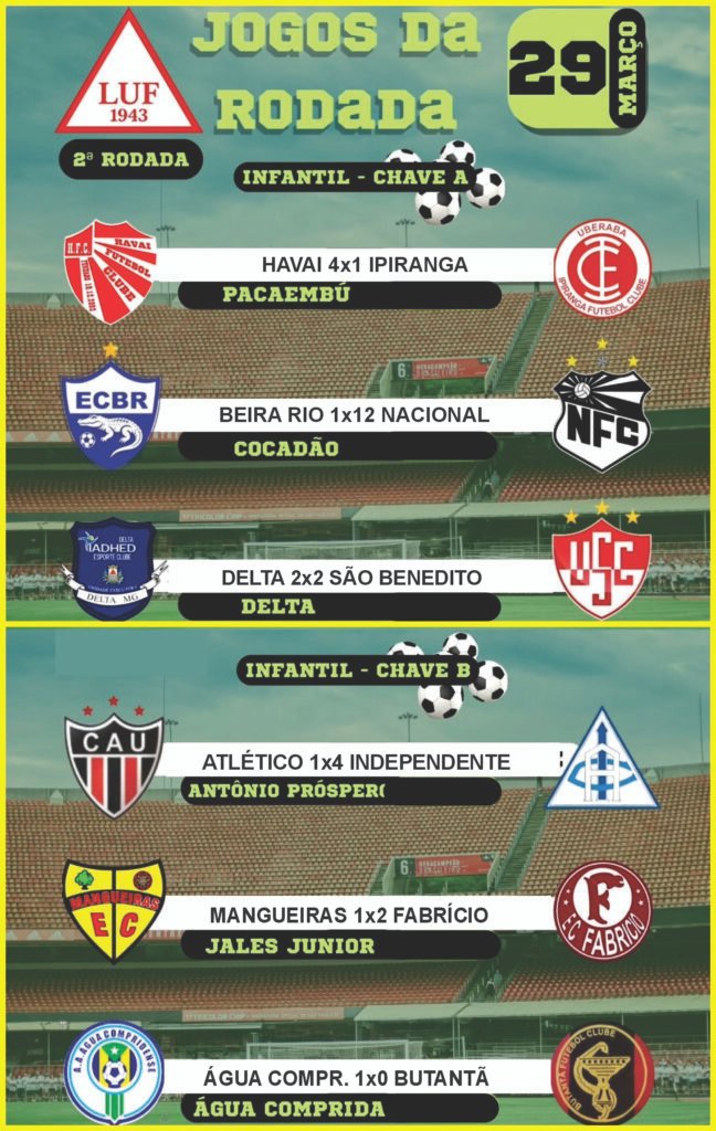 Confira abaixo, Arte feita pela página da LUF no Instagram de todos resultados da rodada do Infantil deste sábado dia 28: