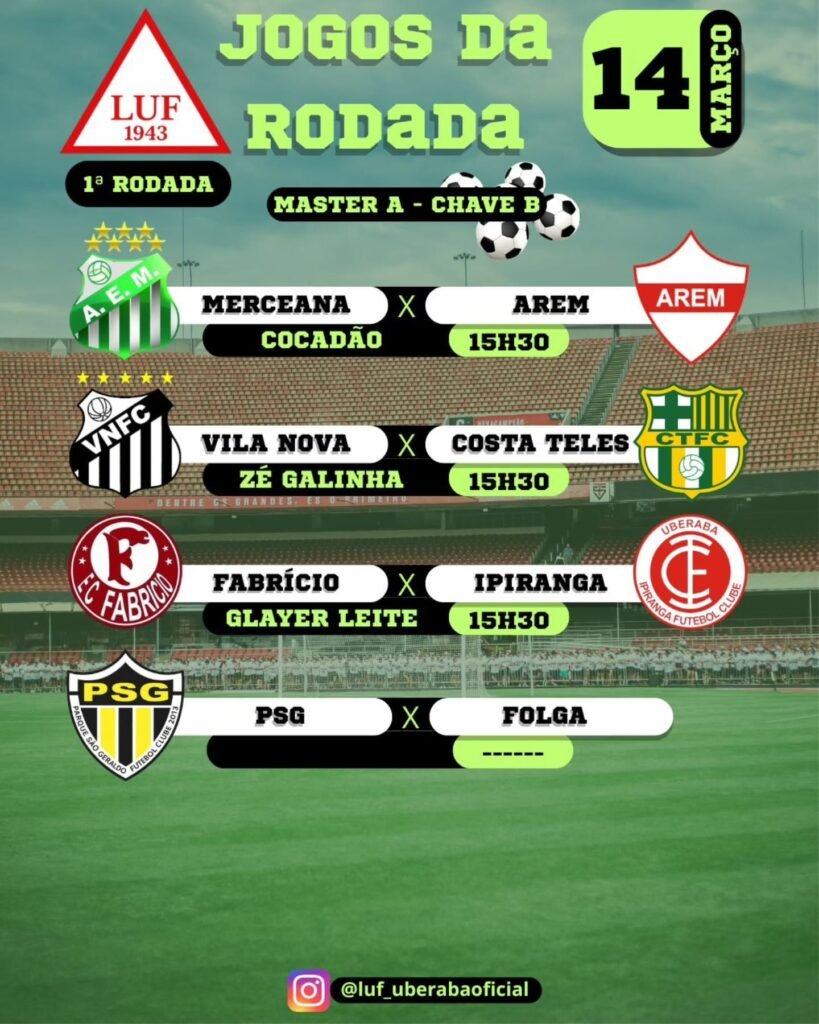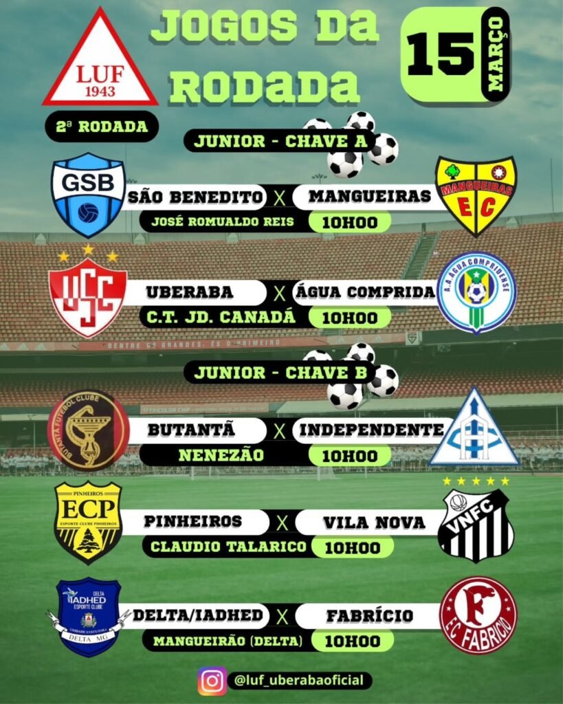 Portanto, o fim de semana promete forte movimentação nos campos de Uberaba. De um lado, o Master A reúne atletas veteranos que continuam ativos no esporte; de outro, o Campeonato Júnior reforça o papel da base no desenvolvimento do futebol uberabense. Assim, as competições organizadas pela Liga Uberabense de Futebol – LUF mantêm o calendário esportivo ativo e fortalecem a tradição do futebol amador na região.