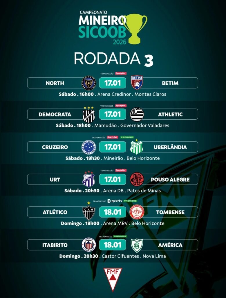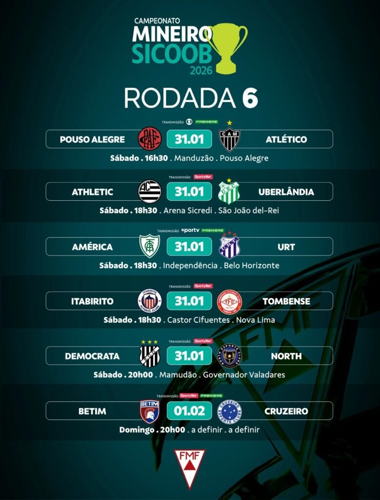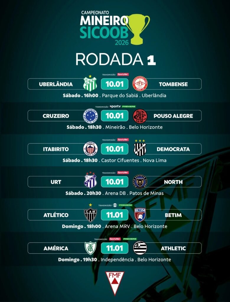 Confira abaixo toda a tabela da primeira fase do Mineiro Módulo I 2026: