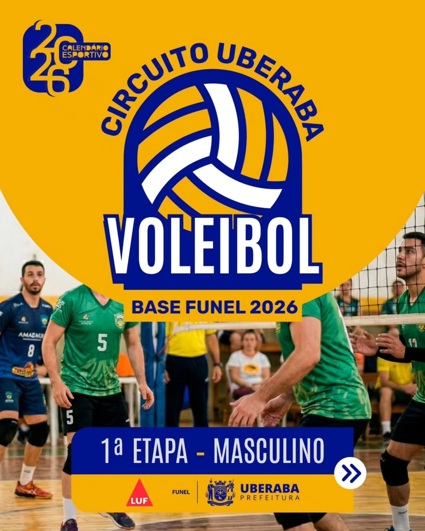 A Fundação Municipal de Esporte e Lazer (Funel) realiza, em parceria com a LUF, neste fim de semana, a sequência da 1ª etapa do Circuito Uberaba de Voleibol de Base Funel 2026, com a estreia das equipes do naipe masculino. Os jogos acontecem na Arena Funel na sexta-feira (17), a partir das 15h, e no sábado (18) e domingo (19), com partidas a partir das 9h. A entrada é gratuita e aberta ao público.