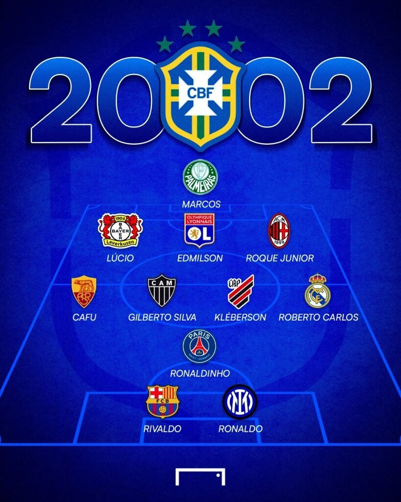 Por fim, em 2002, no Japão e na Coreia do Sul, o Brasil conquistou o penta com a famosa geração de Ronaldo, Rivaldo e Ronaldinho Gaúcho. O elenco titular reunia jogadores de clubes europeus como Internazionale, Barcelona, Milan e Real Madrid, além de representantes do futebol nacional como Marcos, do Palmeiras. Essa mistura consolidou a era moderna da Seleção.
