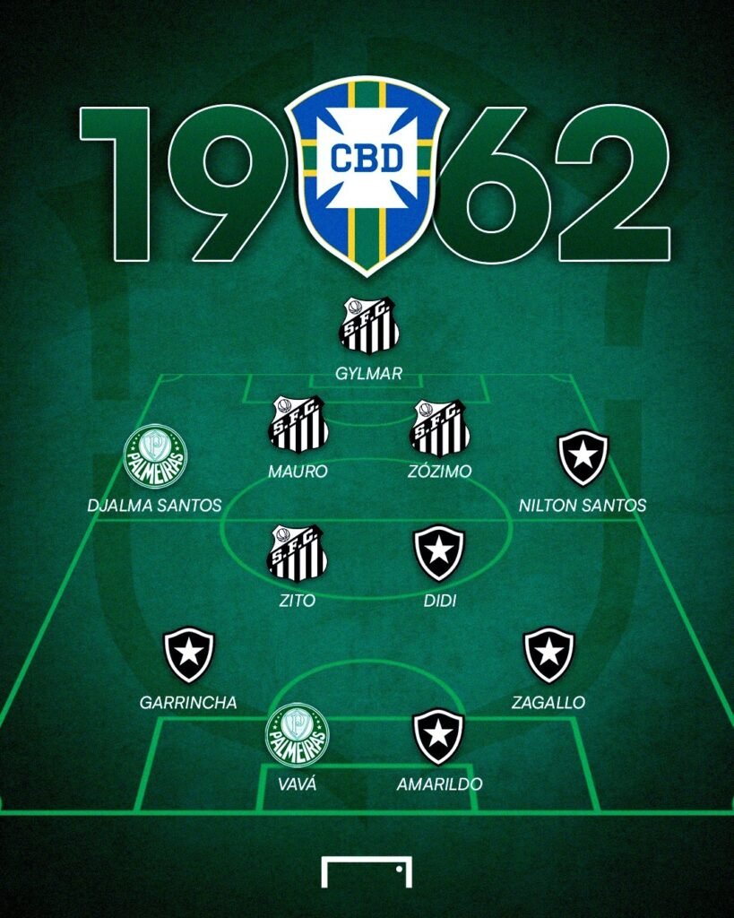 Já em 1962, o bicampeonato no Chile confirmou a força dos mesmos craques, muitos ainda atuando nos mesmos clubes. O Botafogo continuava como uma base sólida, com jogadores como Garrincha e Nilton Santos, enquanto o Santos, de Pelé e Zito, seguia como potência nacional.