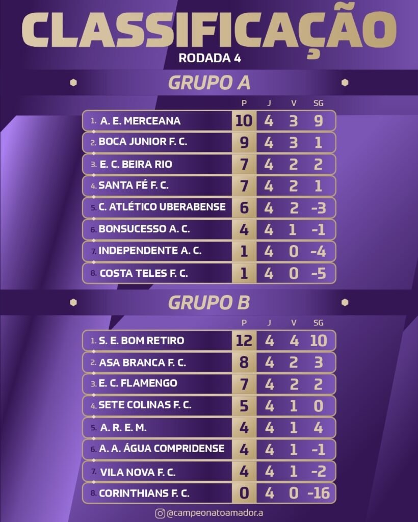 Após a realização da quarta rodada do Campeonato Amador Módulo A, promovido pela Liga Uberabense de Futebol – LUF, confira a classificação da competição feita pelo Instagram campeonatoamador.a do companheiro Nelson Machado.