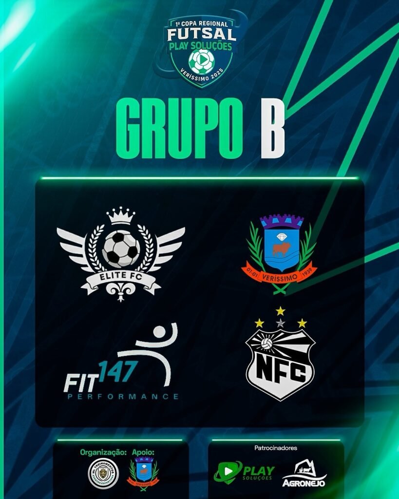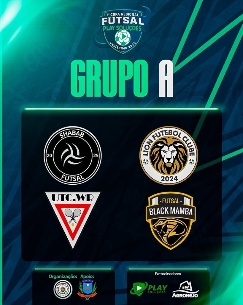 As equipes foram divididas em dois grupos equilibrados. No Grupo A, estão Shabab Futsal, Lion Futebol Clube, UTRC WR e Black Mamba Futsal. Já o Grupo B conta com Elite FC, Studio Fit 147 Performance, Nacional FC e a Prefeitura Municipal de Veríssimo, prometendo confrontos cheios de rivalidade e emoção.