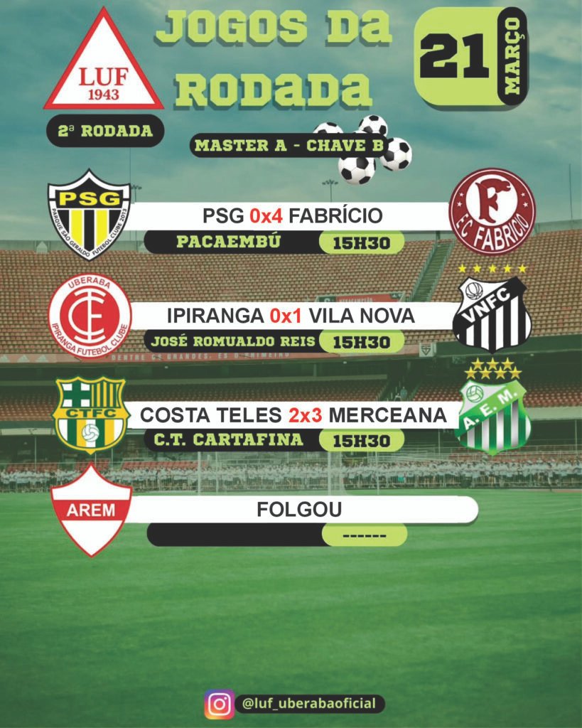 A Liga Uberabense de Futebol – LUF manteve o ritmo do Campeonato de Futebol Master A de Uberaba neste sábado dia 21 de março, e, além disso, confirmou o crescimento técnico da competição com três partidas movimentando a segunda rodada. Enquanto as equipes buscam afirmação neste início de disputa, o equilíbrio ficou marcado em dois confrontos enquanto , a equipe do Fabrício apresentou um desempenho dominante e chamou atenção no cenário local.