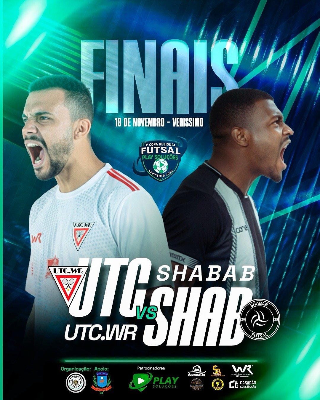 A 1ª Copa Regional de Futsal Play Soluções chega ao momento mais aguardado, pois o Ginásio Poliesportivo Municipal de Veríssimo será palco da grande decisão nesta terça-feira, 18 de novembro, a partir das 20h30. Assim, o torneio que movimentou a região nas últimas semanas terá seu desfecho com o confronto entre UTC/WR Futsal e Shabab Futsal, equipes que mantiveram regularidade e alto nível desde a fase inicial.
