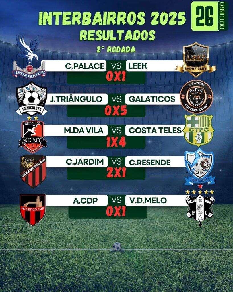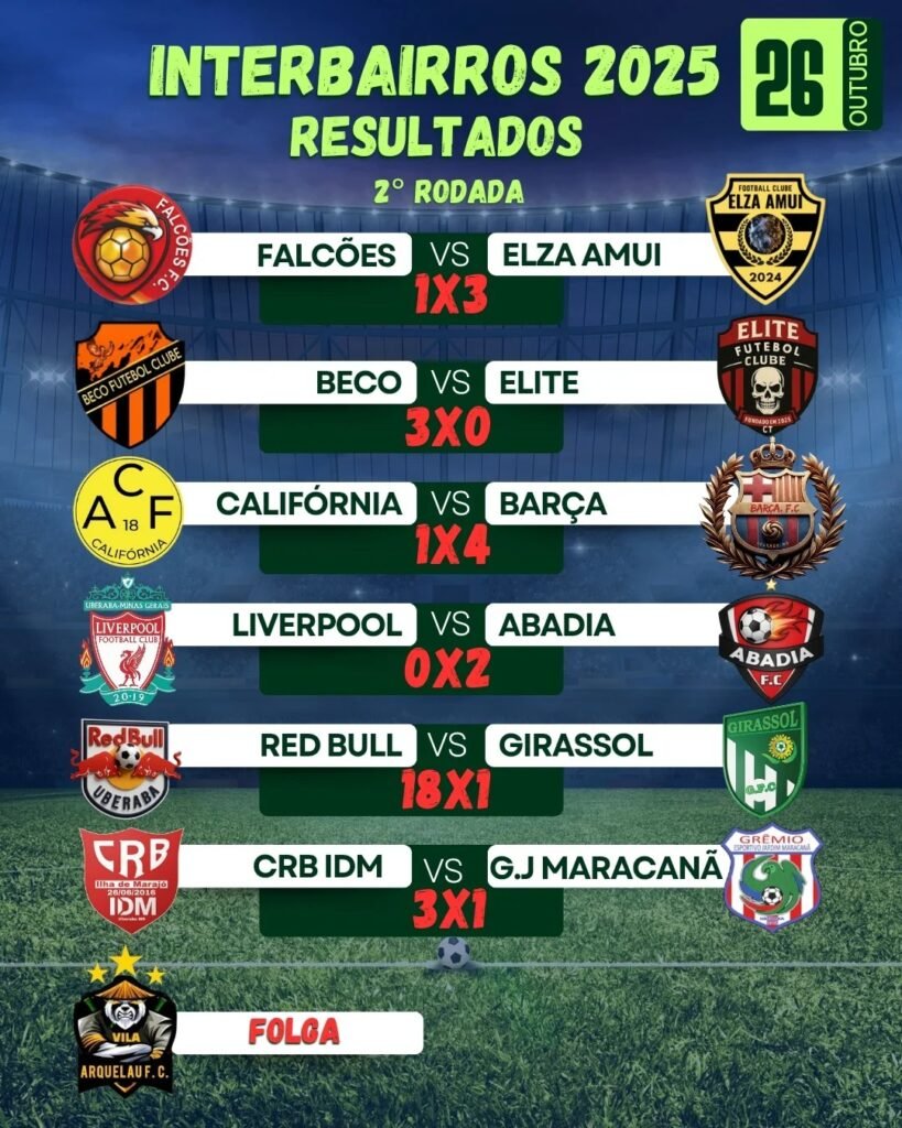 Confira abaixo, em postagem da Página varzeano.com todos os resultados da segunda rodada da competição: