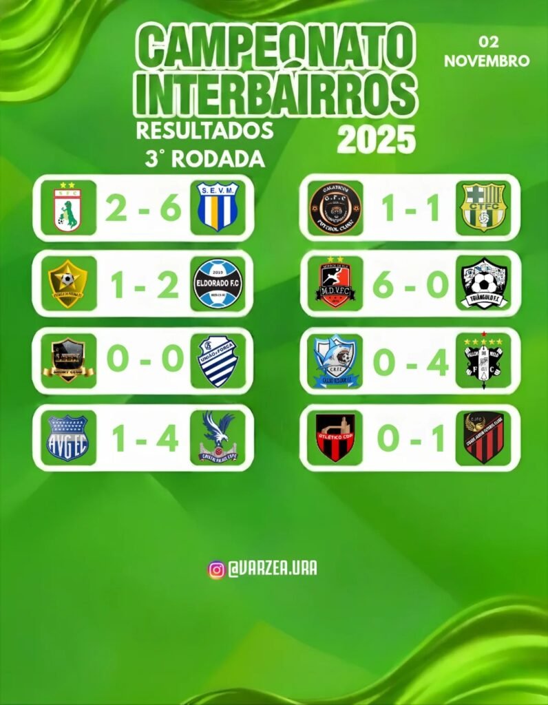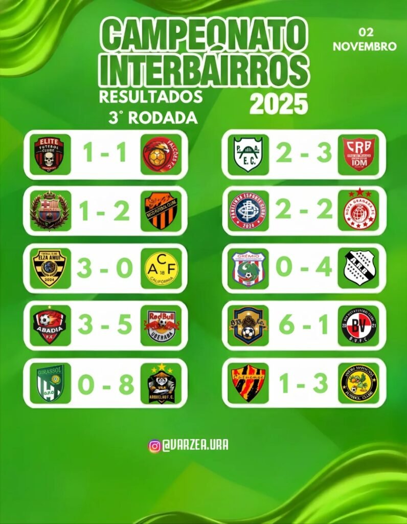 Confira abaixo, na arte feita pela página varzea.ura no Instagram, os resultados das partidas realizadas:
