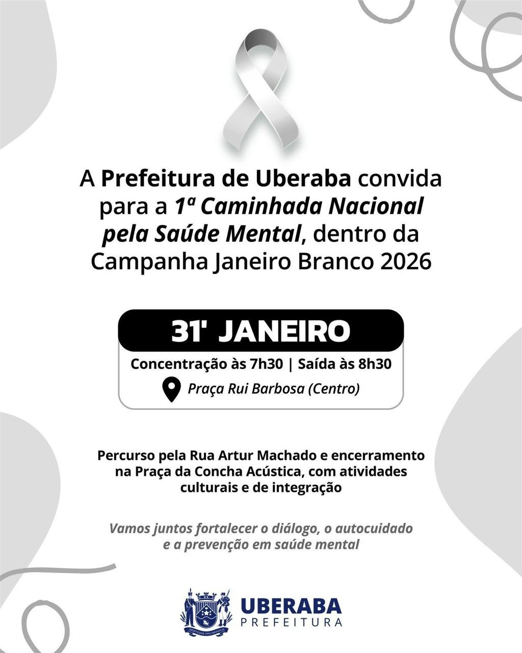 No próximo dia 31 de janeiro (sábado), das 7h30 às 12h, a Prefeitura Municipal de Uberaba – PMU, promove a 1ª Caminhada Nacional pela Saúde Emocional. A intenção é mobilizar famílias , funcionários públicos e a comunidade para uma manhã de cuidado, movimento e acolhimento.