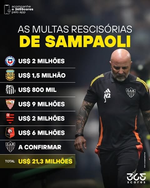 Jorge Sampaoli segue fiel ao seu histórico intenso — dentro e fora de campo. Afinal, quando o assunto é rescisão contratual, o treinador não costuma aliviar. Nos últimos dez anos, o argentino acumulou cerca de US$ 21,3 milhões em indenizações, algo próximo de R$ 111 milhões na cotação atual. Agora, depois da demissão no Atlético Mineiro, esse montante tende a crescer, reforçando uma marca pessoal que já virou pauta recorrente no futebol sul-americano e europeu.