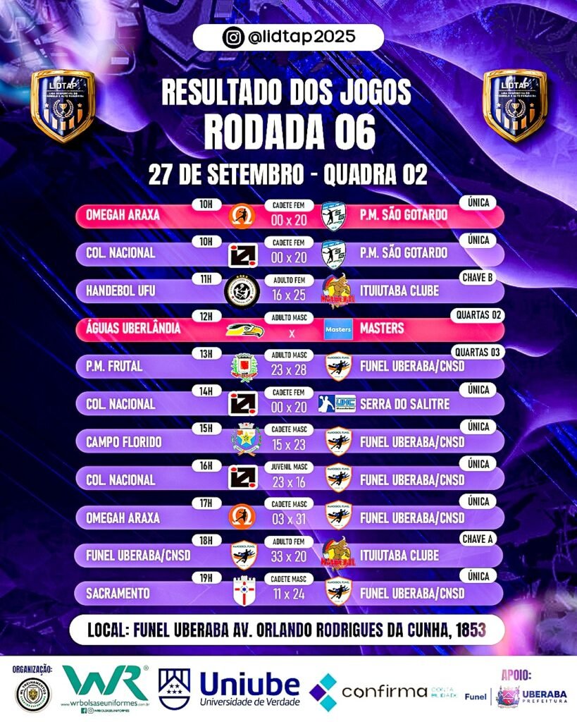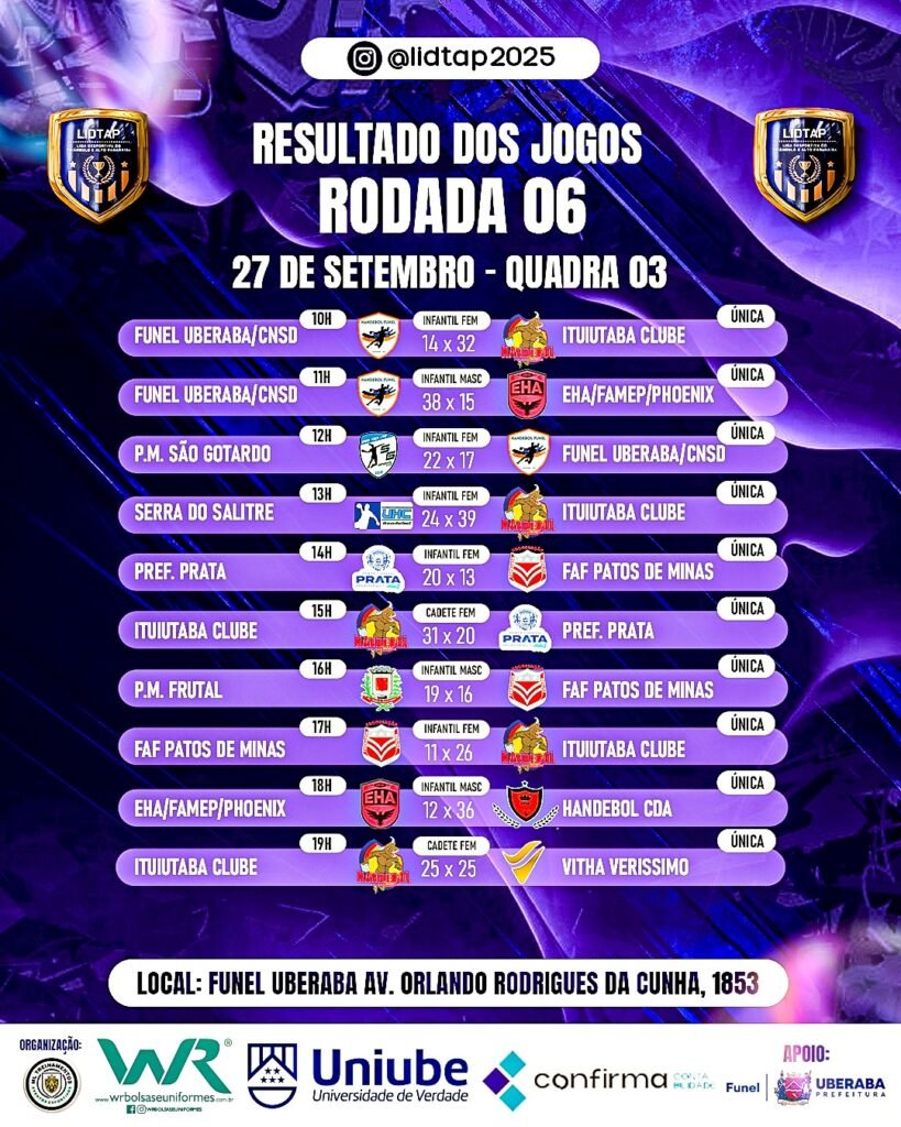 A Liga Desportiva do Triângulo e Alto Paranaíba (LIDTAP) realizou, com o apoio e parceria da FUNEL Uberaba, a última etapa da fase classificatória do Campeonato de Handebol 2025.