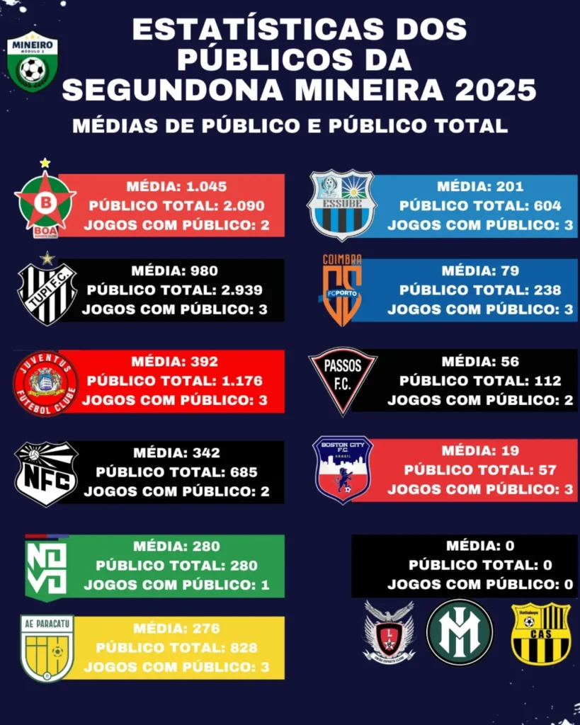 Confira abaixo a estatística dos públicos no da Segundona Mineira: