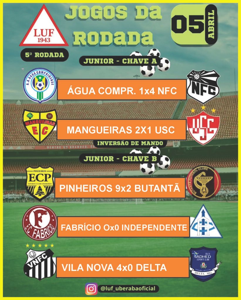 Confira abaixo, Arte com todos os resultados da quinta rodada do Campeonato de Júniores: