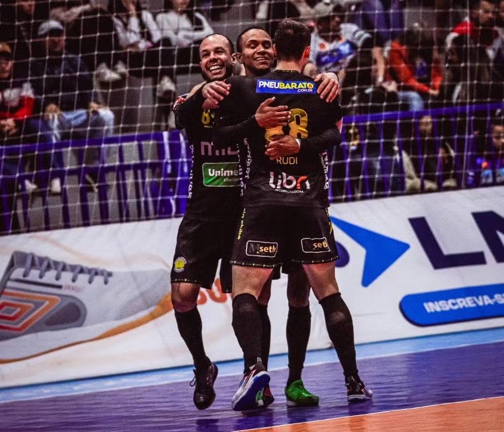 Em Camaquã/RS, o Praia Clube assumiu a liderança da Liga Nacional de Futsal – LNF ao vencer o Vélez Camaquã por 4 a 1 no Ginásio Wadislau Niemxeski, alcançando 43 pontos e deixando o Sorocaba para trás, que havia empatado com o Santo André.