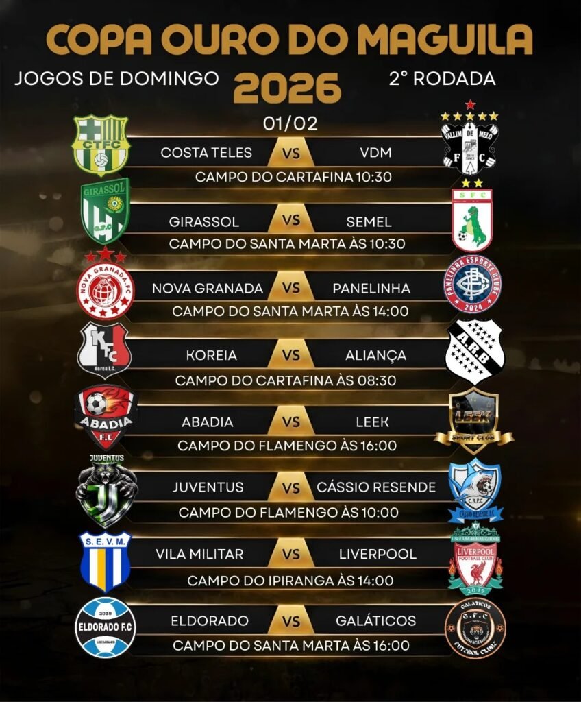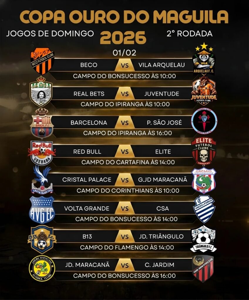 A Copa Ouro do Maguila 2026 volta a movimentar o cenário esportivo neste domingo, 01 de fevereiro, quando a segunda rodada promete elevar ainda mais o nível de competitividade nos gramados. Após uma estreia marcada por intensidade, equilíbrio e jogos disputados, as equipes entram em campo, agora, mais ajustadas taticamente e, sobretudo, conscientes da importância de somar pontos desde cedo na tabela. Dessa forma, cada lance ganha peso, enquanto cada resultado começa a desenhar o rumo da competição. Além disso, a expectativa cresce entre atletas, comissões técnicas e torcedores, já que a rodada pode consolidar favoritos e, ao mesmo tempo, recolocar times em busca de recuperação.