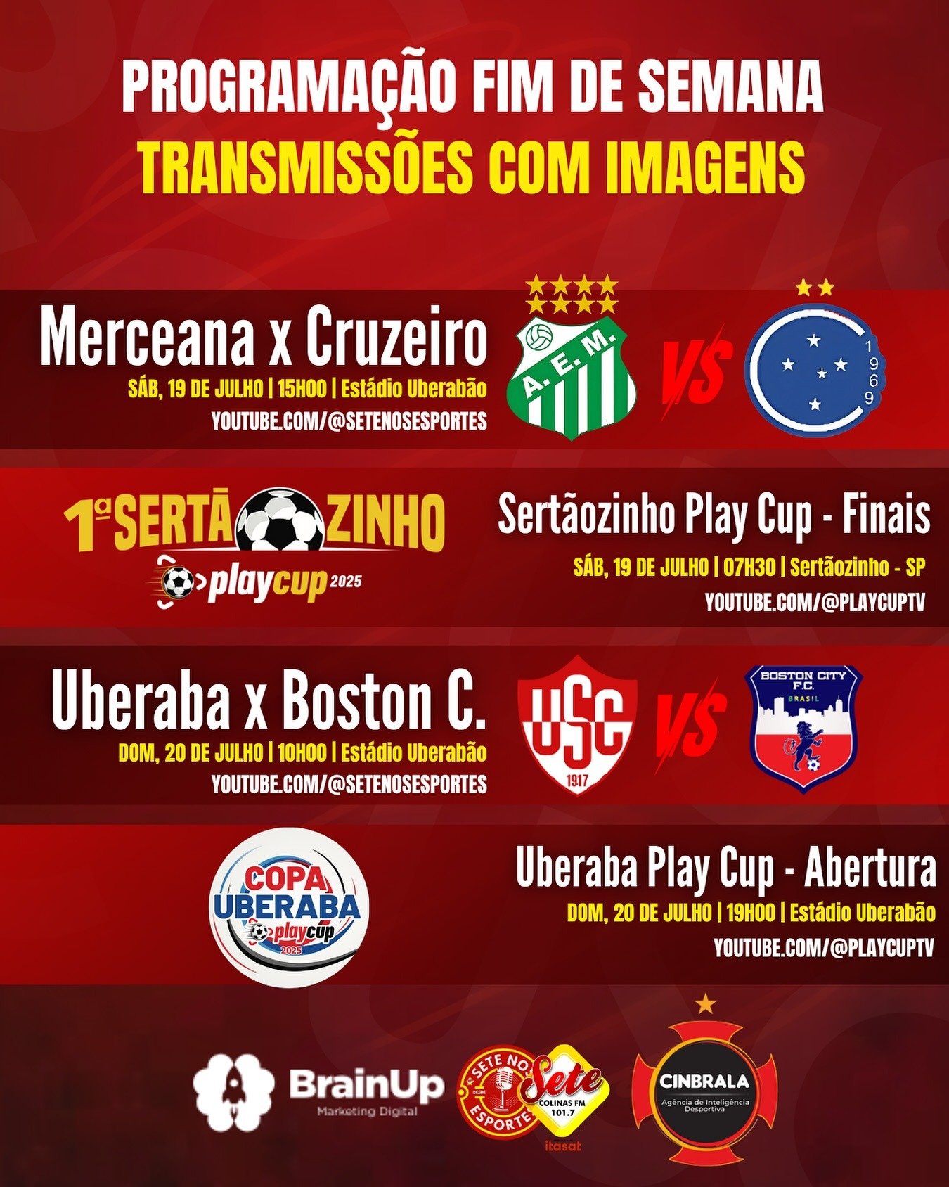 10h00 – Uberaba 🆚 Boston City (Mineiro Sub-20 – Estádio Uberabão)