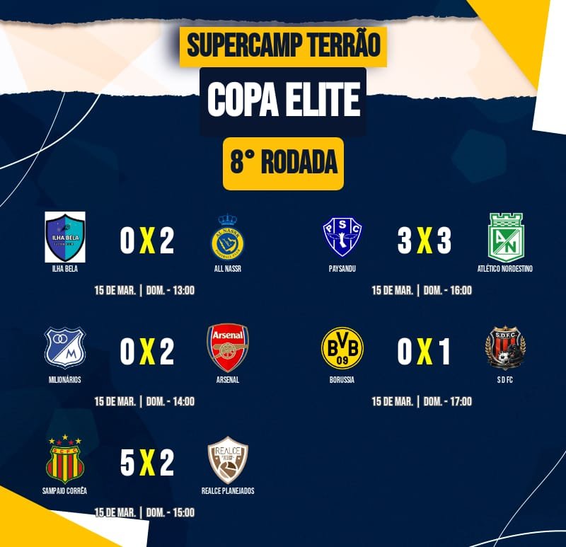 Enquanto isso, no período da tarde, a bola voltou a rolar com a realização de mais cinco partidas válidas pela Copa Elite. Dessa forma, as equipes buscaram pontos importantes na tabela e aumentaram o ritmo da disputa nesta fase do torneio. Além disso, alguns confrontos apresentaram forte intensidade ofensiva, fator que elevou o nível técnico da rodada e manteve o interesse do público nas arquibancadas.