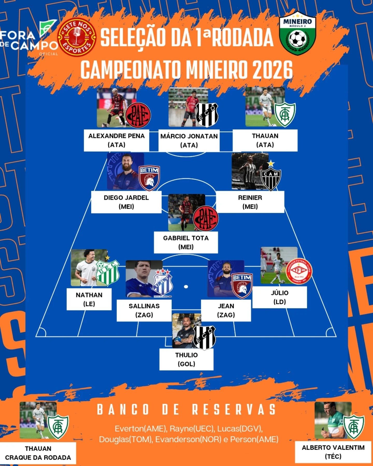 Ao final da 1ªRodada do Campeonato Mineiro 2026, foi montada a seleção da rodada feita por opinião de alguns analistas.