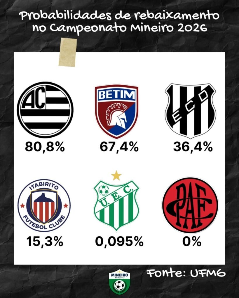 Semifinais e rebaixamento no Mineiro 2026. Confira chances de cada equipe