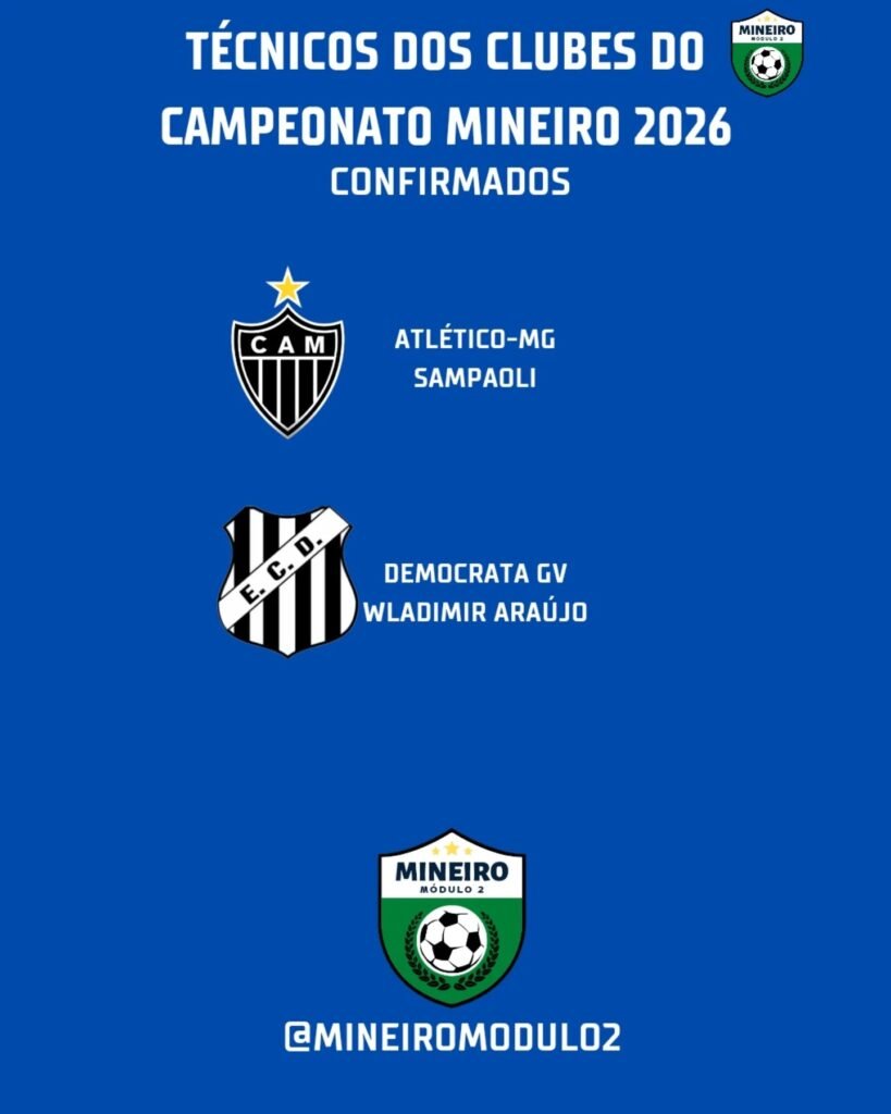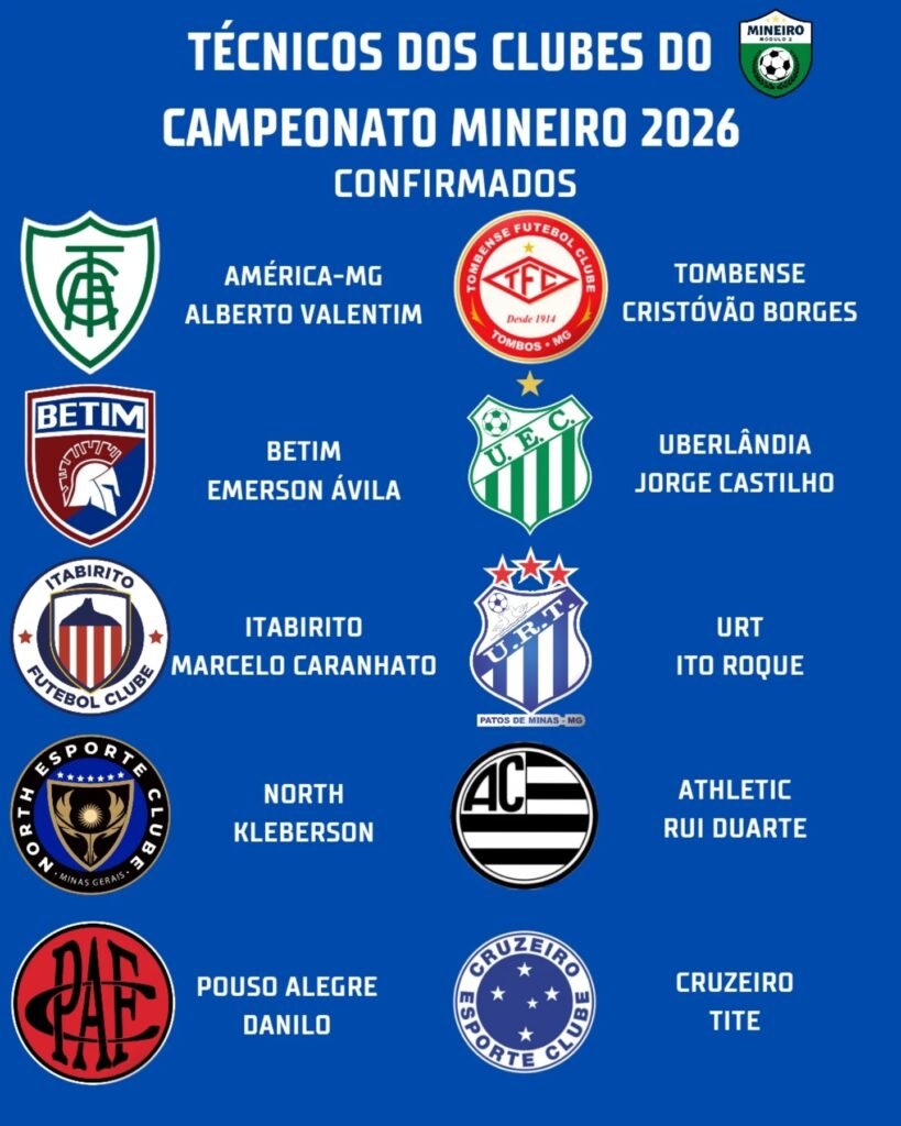 O Campeonato Mineiro Módulo I de 2026 começa em 10 de janeiro, e promete muitas emoções, sobretudo pela diversidade de treinadores que comandarão os 12 clubes da elite do futebol de Minas Gerais, numa disputa marcada por rivalidades tradicionais e projetos promissores. A competição estadual reúne América-MG, Athletic, Atlético-MG, Betim, Cruzeiro, Democrata GV, Itabirito, North, Pouso Alegre, Tombense, Uberlândia e URT, divididos em três grupos para a fase inicial.