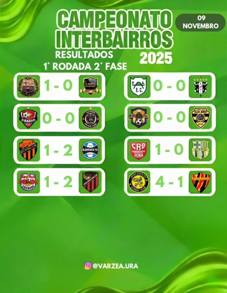 Teve início na tarde deste domingo dia 9 de novembro, a segunda fase do Campeonato de Futebol Interbairros e Varzeano de Uberaba, promovido pela Fundação de Esporte e Lazer – Funel Uberaba em parceria com a Liga Uberabense de Futebol – LUF.
