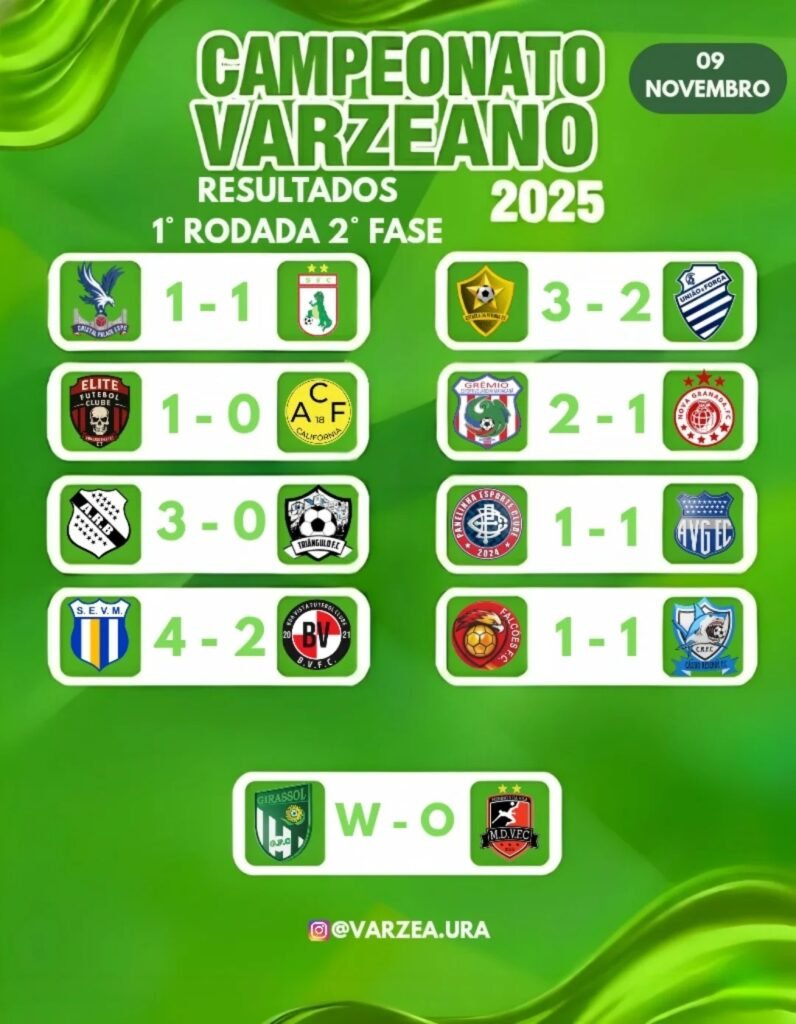 Confira abaixo, arte feita pela página várzea.com no Instagram de toda a rodada deste final de semana: