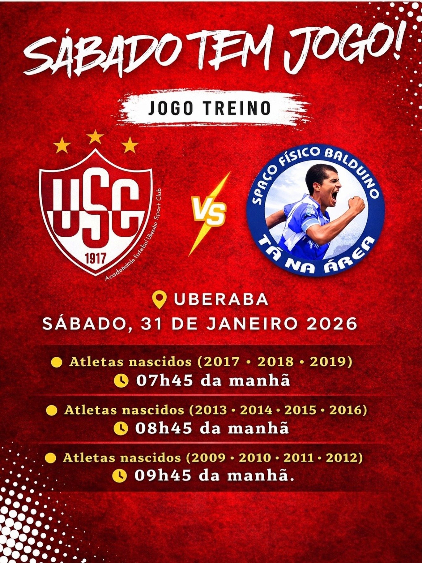 O Uberaba Sport Club intensifica, sua preparação de base e realiza, na manhã deste sábado, dia 31 de janeiro, uma sequência estratégica de jogos-treinos com suas categorias de formação. O Colorado encara, além disso, as equipes do Spaço Físico Balduíno – Tá na Área, confronto que, consequentemente, serve como importante termômetro técnico e físico para o início do planejamento anual.